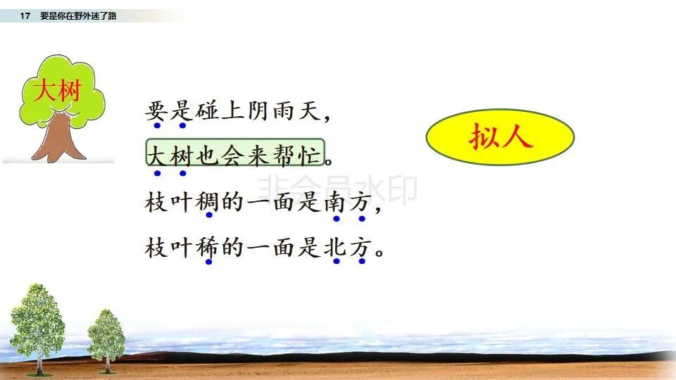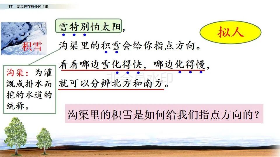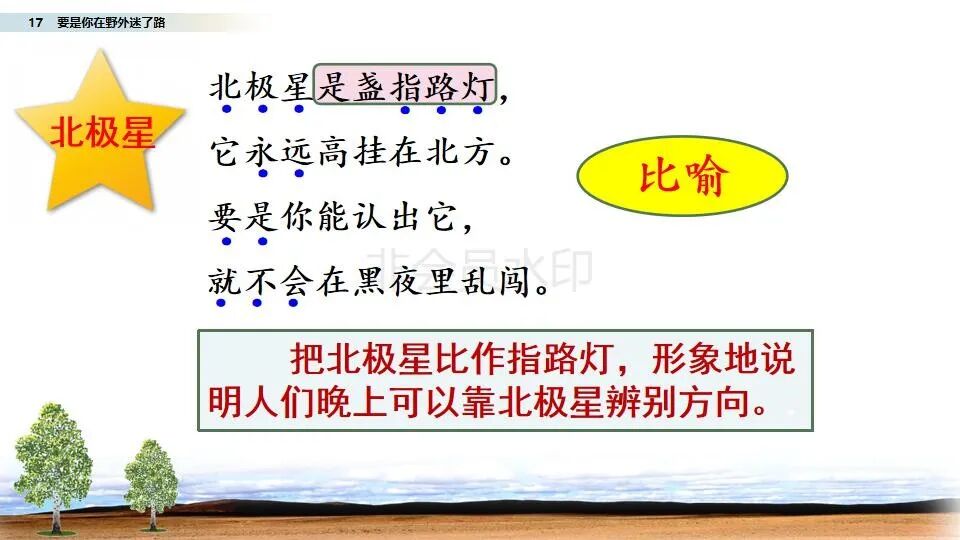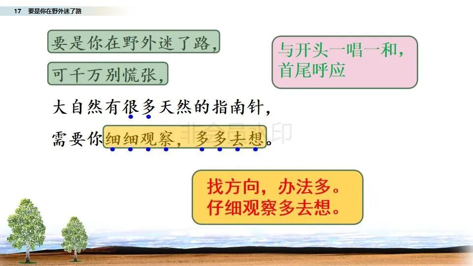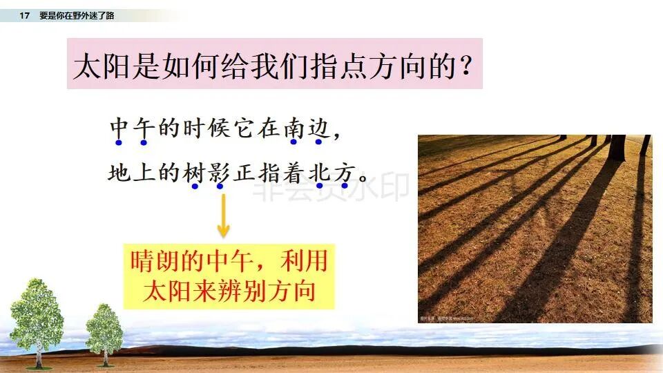 部编二年级语文(下册)第17课《要是你在野外迷了路》图文讲解
