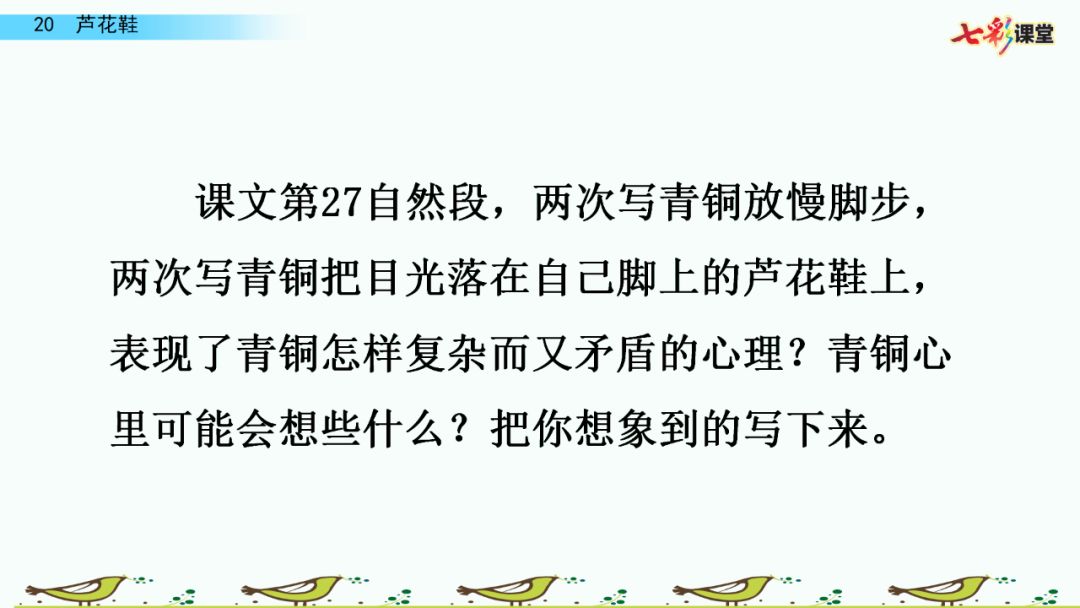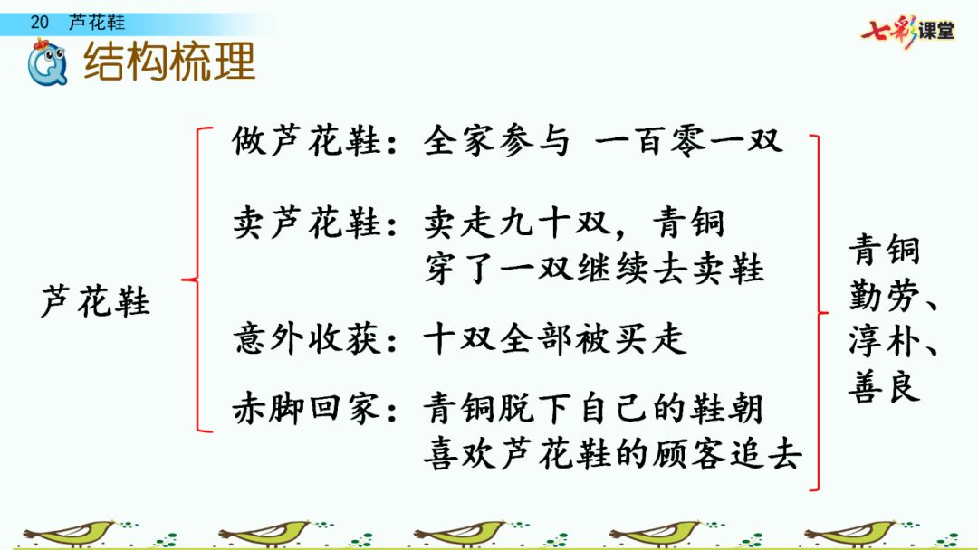 小朋友们,芦花鞋是全文的线索,全文是围绕它来写的。
