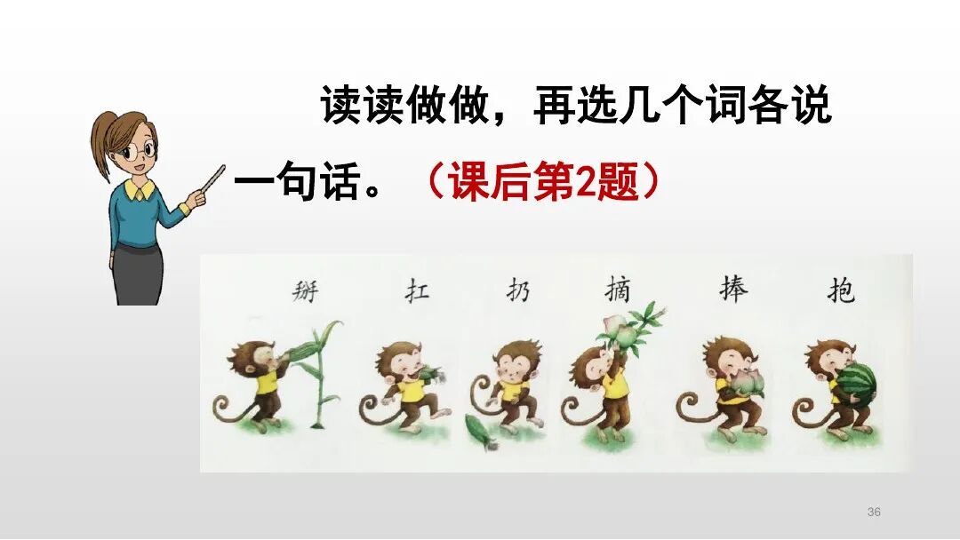 二、结合插图,说说小猴子下山以后看到了什么,做了什么。