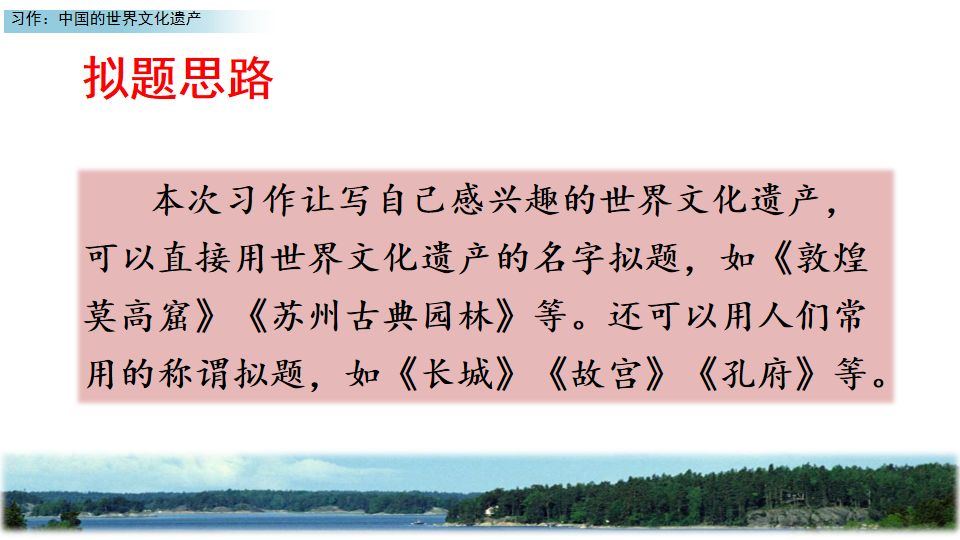 部编五年级语文(下册)习作《中国的世界文化遗产》精讲