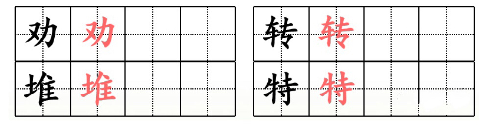 书写时我们要认真观察每个笔画在田字格中的位置,还要注意这些字的笔画笔顺。