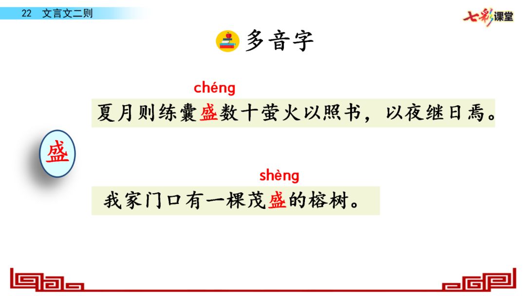囊萤夜读:(车胤)把萤火虫装在袋子里(照明),在夜里读书。本文选自《晋书·车胤传》。囊,用口袋装。萤,萤火虫。