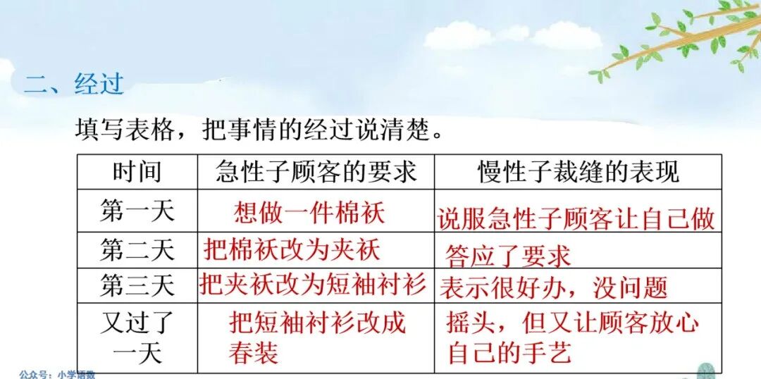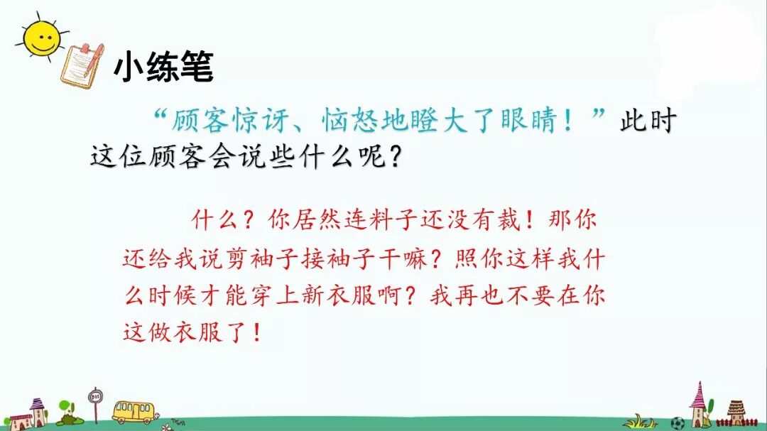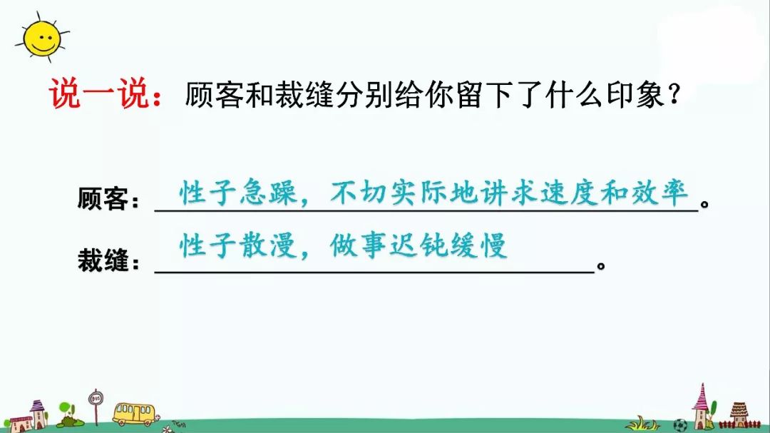 假如裁缝是急性子,顾客是慢性子,他们之间又会发生怎样的故事呢?发挥想象,讲给同学听。
