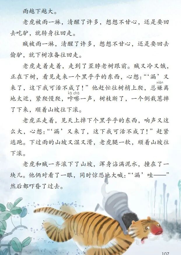2.前边有棵歪脖老树,老虎想:“漏’真厉害,像粘胶一样,贴住我了。