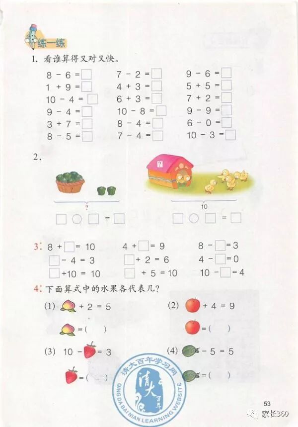 冀教版一年级数学(上册)高清电子课本