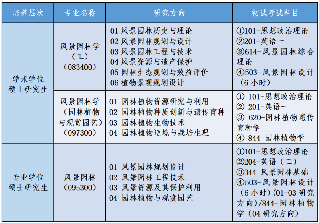 风景园林学(园林植物与观赏园艺)人文和艺术兼具、美学与底蕴并存。在这里,您将体会到“国家林草局南方园林植物种质创新与利用重点实验室”“浙江省园林植物种质创新与利用重点实验室”做科研的便利,参与到“花卉产业省级重点科技创新团队”的花卉创新之旅,感受到园林植物不同角度的探索乐趣,得到数十位具有博士学位或海外经历导师的倾心指导。
