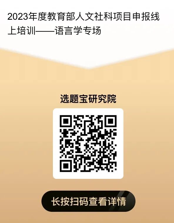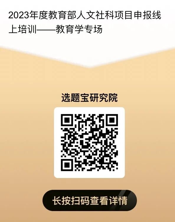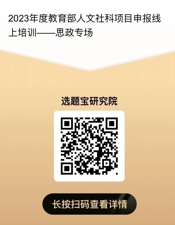 诚邀您参加“2023年度教育部人文社科项目申报线上培训”,此次培训邀请具备教育部项目成功申报经验、成功指导经验的专家教授给大家带来关于教育部项目选题、申报书写作的详细经验分享和案例剖析。助力各位老师在2023年度教育部人文社科项目申报中取得好的成绩。