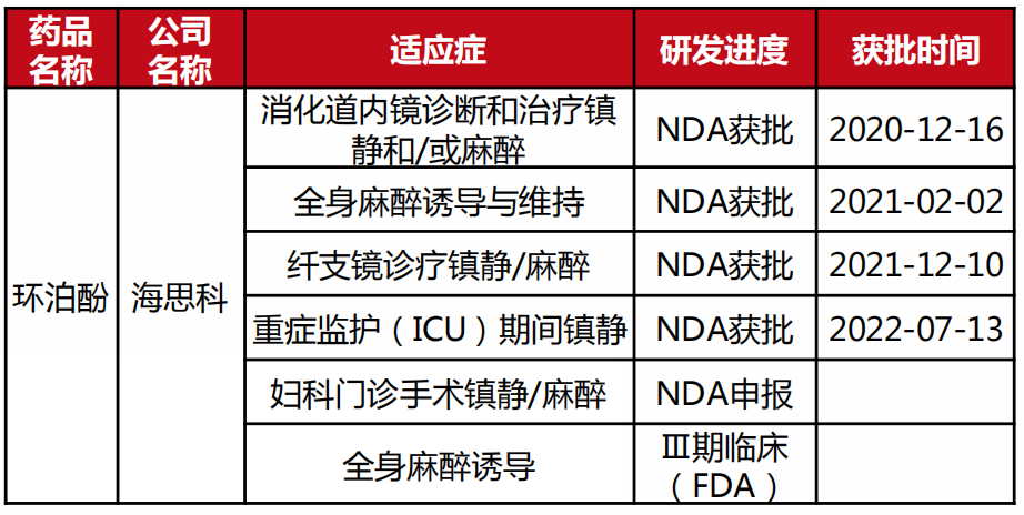 老牌巨头恒瑞医药和人福医药也不甘示弱,前者已获批新产品有瑞马唑仑,后者有苯磺酸瑞马唑仑(引进)和磷丙泊酚二钠。