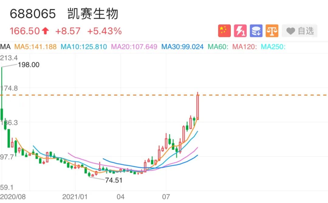 合成生物学赛道的火热,同时带动了部分公司股价的起飞,有着“合成生物第一股”的凯赛生物,股价在4个月的时间内翻了一翻,2021年的动态市盈率超过了百倍。
