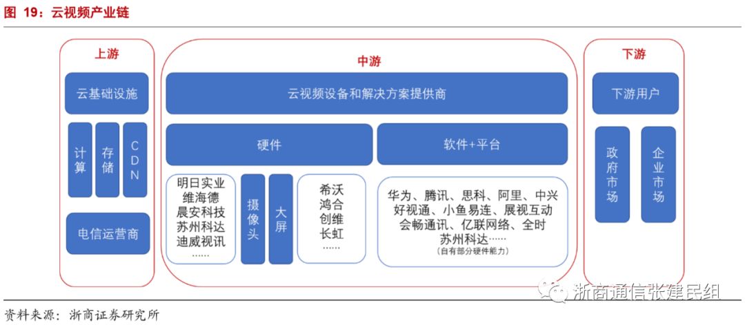 云视频产业链主要包括上游基础设施供应商、中游云视频设备和解决方案提供商、下游行业应用客户。
