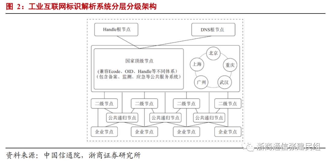 工业互联网标识解析是工业互联网的重要组成,依托标识解析体系可以实现信息的跨系统、跨企业、跨地域交互。目前我国北京、武汉、上海、重庆、广州五大顶级节点已经投入使用,二级节点数量突破80个,接入企业超过7400家。截至2020年11月底,我国工业互联网标识注册量已经超过80亿,日均解析量超过500万次,工业互联网应用成效初步显现。