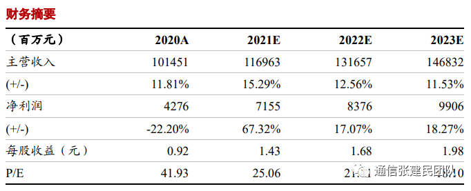公司上半年业绩超市场预期,5G份额提升,云计算和政企业务打开新的成长空间,自研芯片进一步提升竞争力和盈利能力,预计公司2021-2023年归母净利71.6/83.8/99.1亿,对应25/21/18倍,维持“买入”评级。