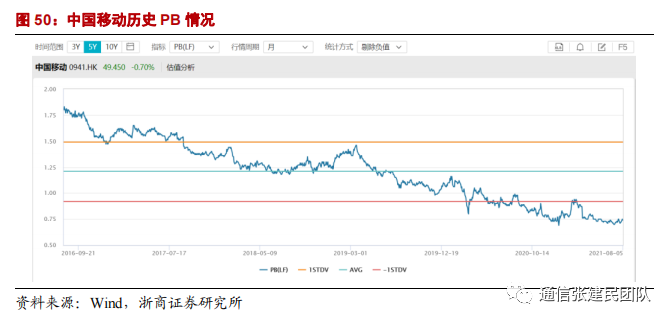移动 ARPU 趋势不及预期;5G 行业应用发展不及预期;5G 网络建网成本和运维成本压力超出预期;行业提速降费政策发展不及预期的风险等。