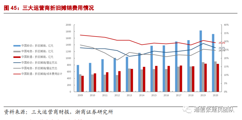 2020 年作为 5G 商用元年,三大运营商整体资本开支 3330 亿元,较 2019 年实际资本开支增长 11.0%。2021 年三大运营商合计资本开支计划 3406 亿元,同比增长 2.3%。中国移动 2021 年计划资本开支 1836 亿元,较 2020 年 1806 亿元小幅增长,预计未来 2-3 年资本开支将基本持平或者略降低,公司相关成本压力将缓解。