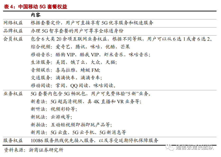 第一, 产品形态脱离裸流量,借助存量客户 5G 升级契机,在流量连接之上新增大量内容与权益选择,差异化匹配客户需求,增强客户粘性,增厚套餐价值。