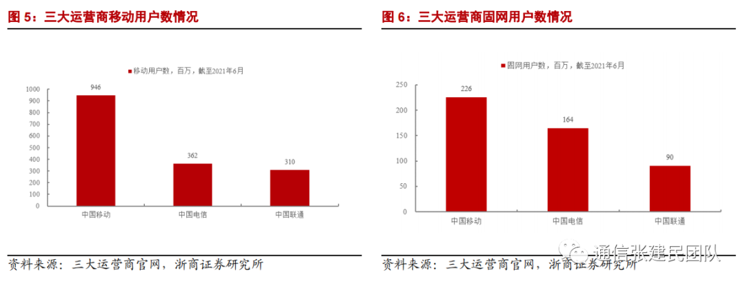 截至2021年6月底,中国移动移动客户总数达到9.46亿户,占工信部统计的国内移动用户总数16.14亿户的58.6%,中国移动有线宽带客户总数达到2.26亿户,占工信部统计的国内固网宽带用户5.1亿户的44.3%。中国移动已经是全球最大的移动业务运营商和全球用户数量最多的家庭业务运营商。