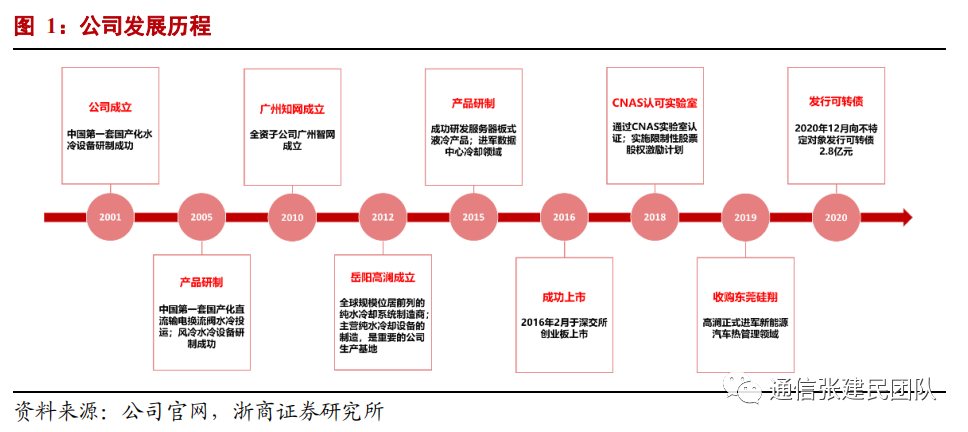 公司于2001年在广州成立,是国内领先的电力电子装置用纯水冷却设备专业供应商,公司 岳阳高澜制造基地是目前全球位居前列的水冷设备制造基地。2016年2月公司在深交所上市。
