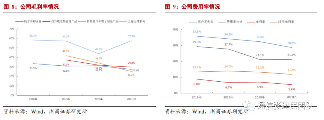 毛利率方面,高澜随着纯水冷却设备国产化率的提升,行业市场竞争加剧,公司纯水冷却设备毛利率较前期有所下降,但目前总体维持平稳,股权激励和发行可转换债券等事项对费用端也有一定的影响。