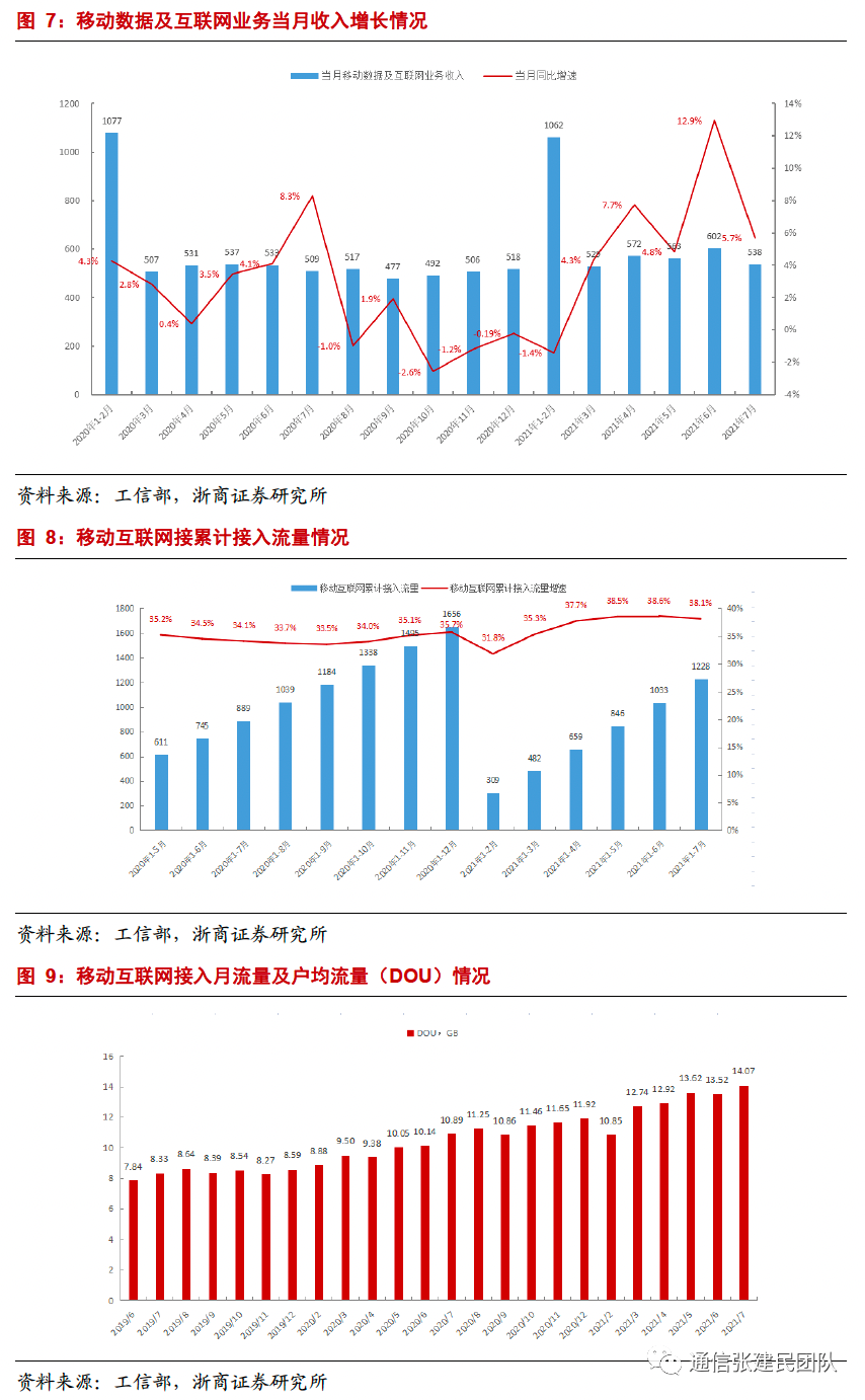 自2019年1-8月起,电信业务收入累计同比增长由0.0%持续增长至2021年1-7月的8.7%,我们之前就电信业务收入拐点形成的判断得到验证,并且呈加速提升态势。