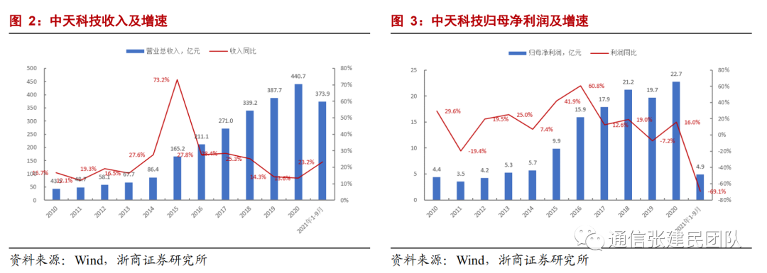 7月,公司公告提示公司及下属经营高端通信业务的控股子公司南通江东电科通信有限公司存在部分高端通信业务相关合同执行异常,相关风险敞口合计37.55亿元。10月,公司公告,基于谨慎性原则,对合并报表范围内的资产进行了全面清查,截至三季度末,2021年度对高端通信业务相关资产计提减值损失20.84亿元。从该事项发生以来,公司积极披露、沟通、应对,三季度整个季度的跟踪来看,目前该事项的风险没有蔓延到公司其他业务。近期,公司在中国移动光缆、5G天线,南方电网电力传输产品等项目中中标份额居前;通过邓白氏国际资信认证;获评江苏省工信部 “2021年度省工业互联网发展示范企业(标杆工厂类)”;江苏省科技发展战略研究院、科技情报研究所 “2021江苏省百强创新型企业”榜单第四;国家发改委专题专栏发表中天科技评论文章,点评公司发挥自身优势,找准突破方向,探索两业融合新模式。而经营业绩层面,三季度单季公司归母净利润2.43亿元,去年同期为5.03亿元,而三季度公司合计计提各项资产减值准备11.26亿元(其中高通业务相关10.62亿元),扣除所得税因素后,相应减少单季合并报表净利润9.57亿元,减少归母净利润8.54亿元(其中按照权益比例计算影响数5.15亿元,因高端通信业务财务资助为南通江东电科通信有限公司少数股东承担亏损影响数3.39亿元),剔除高通业务资产减值影响,公司三季度单季归母利润同比大幅增长。未来公司风险资产预计将继续与现有主营业务保持有效分割,随着公司风险敞口减值计提的逐渐完成,明年公司有望实现轻装上阵。![]()