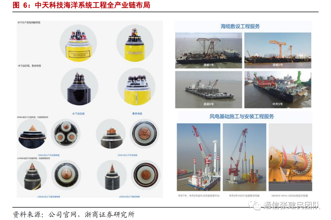 目前国内海底电缆领域主要的竞争厂商包括中天科技、东方电缆、亨通光电、青岛汉缆、安通光电、长飞宝胜等少数几家,其中中天科技、东方电缆布局更早,在产品实力和收入规模体量上优势明显,公司更是在产能和收入规模上行业领跑。公司通过技术创新、技改提速、扩产增效等手段进一步不断提升竞争力,完成了国内线路最长的三芯220kV海底电缆(线路长度96.5公里)-国家电投如东H4、H7海上风电项目、国际最高电压等级±400kV交联聚乙烯绝缘直流海底电缆-江苏如东海上风电项目、国内最大截面三芯220kV海底电缆(3×1000mm2)-三峡大丰H8-2海上风电项目、国内首个并长度最长的集束海底电缆-渤中26-3油田扩建项目等示范工程。