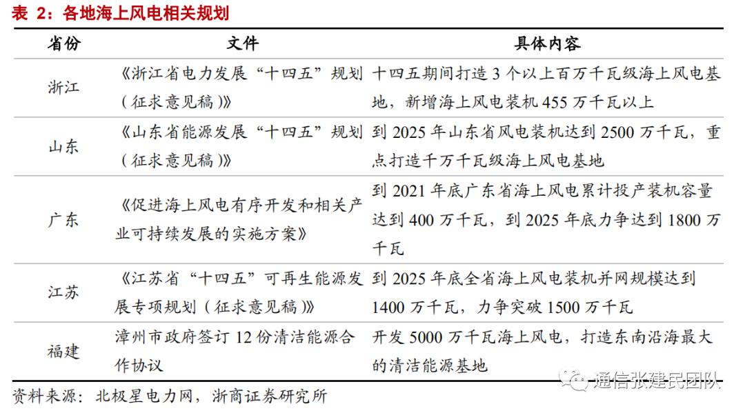 我国广东、江苏、山东、浙江等多地出台相关海风建设规划,规模预期可观,随着海 风平价进程的超预期,国内海上风电建设规模有望进一步提升。![]()