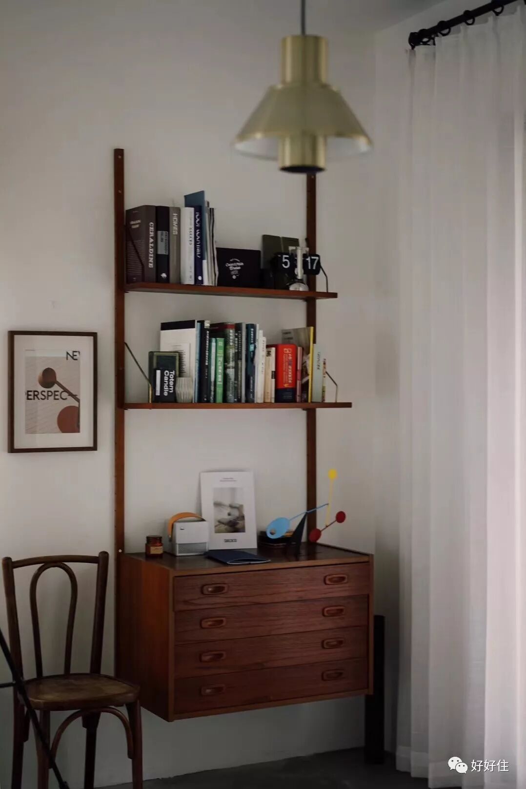 ▲ 三楼书房改造前是一个小型会客空间,改造后变成了一个小型的书房空间。吊灯是50年代的Fog Morup中古吊灯,非常时髦。