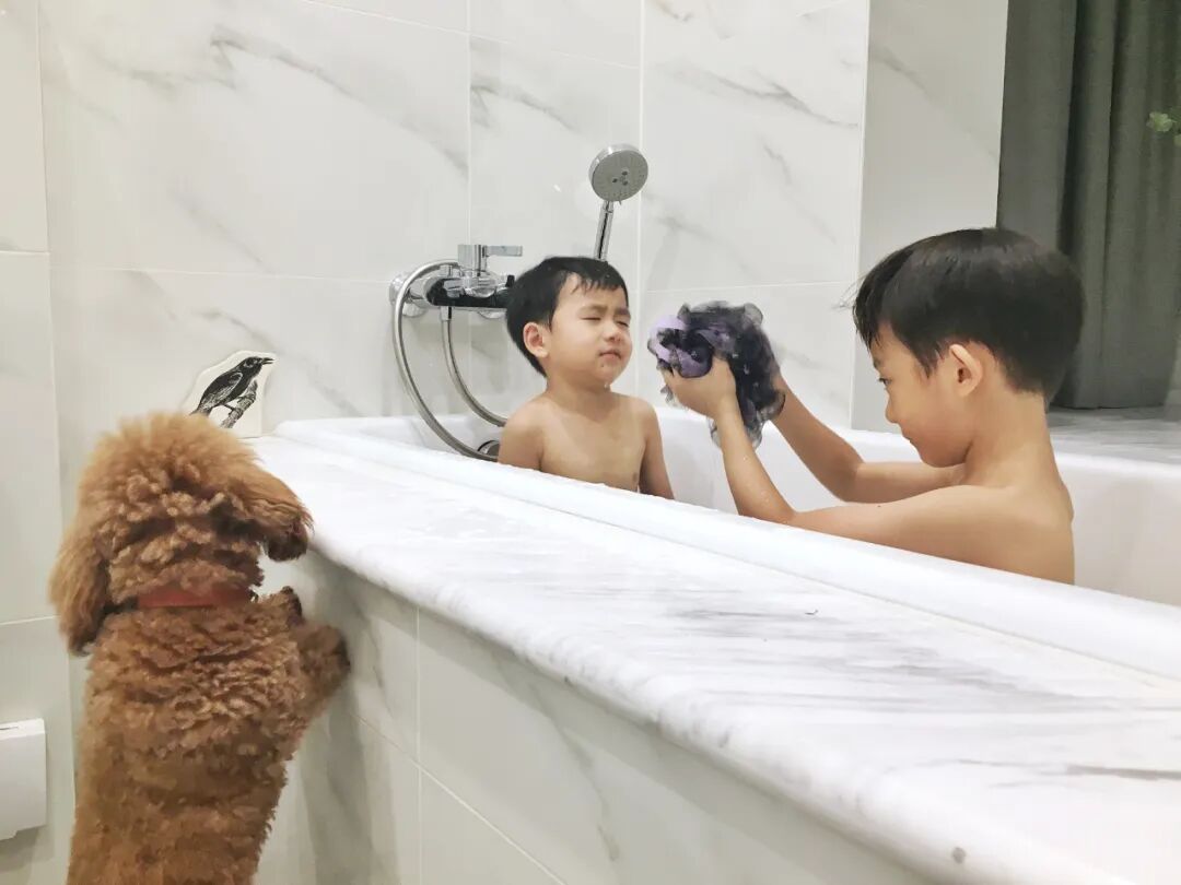 主卫浴缸原本是想休息放松泡个澡,现在倒是孩子用得比较多。