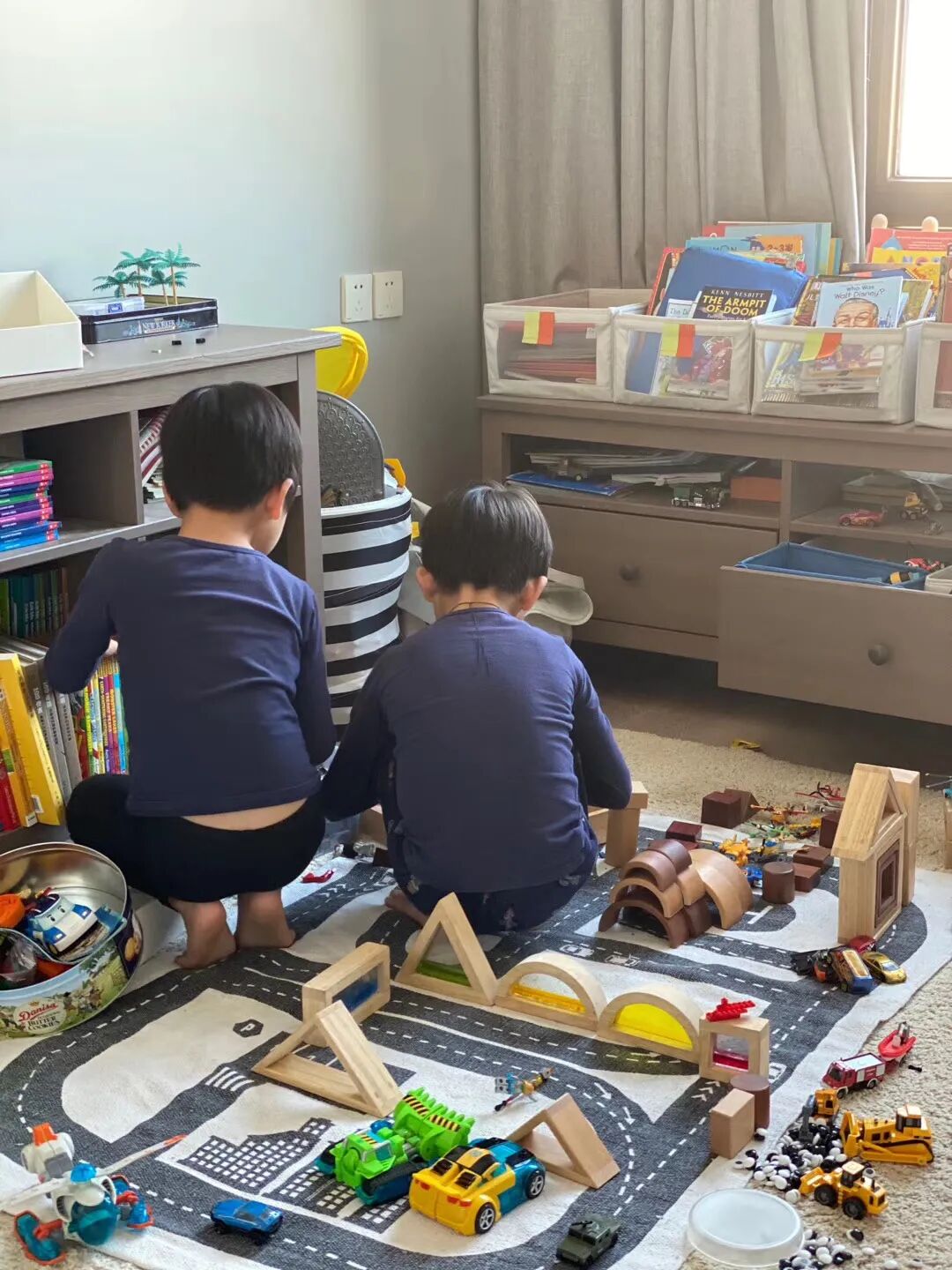 参考幼儿园和学校的做法,把现阶段感兴趣的书放在盒子里,方便他们随时取看。