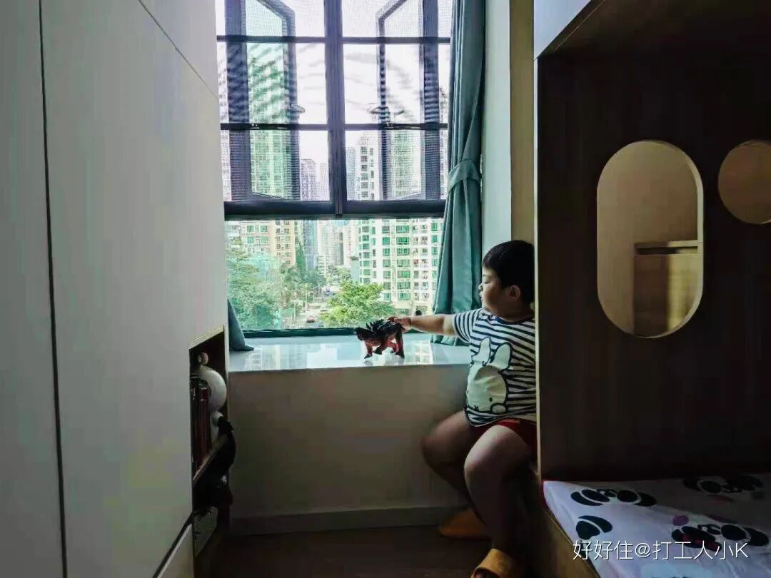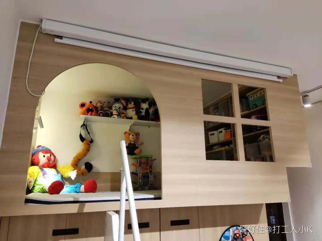 两个房间都很迷你,原本放一张床都不富裕,重新规划之后显得不那么局促。儿童房目前是阿姨和宝宝一起睡下床,上床基本是他攀爬玩耍的地方。