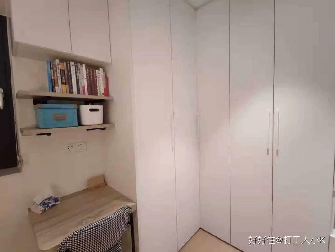 最后选了这个力所能及的房子,位置合适,小区配套齐全。最关键的是,建面 77㎡,使用面积 65㎡,具备三房两卫的原始条件,尽管两个房间都小得可怜,但这个使用率让深圳打工人看到了希望。
