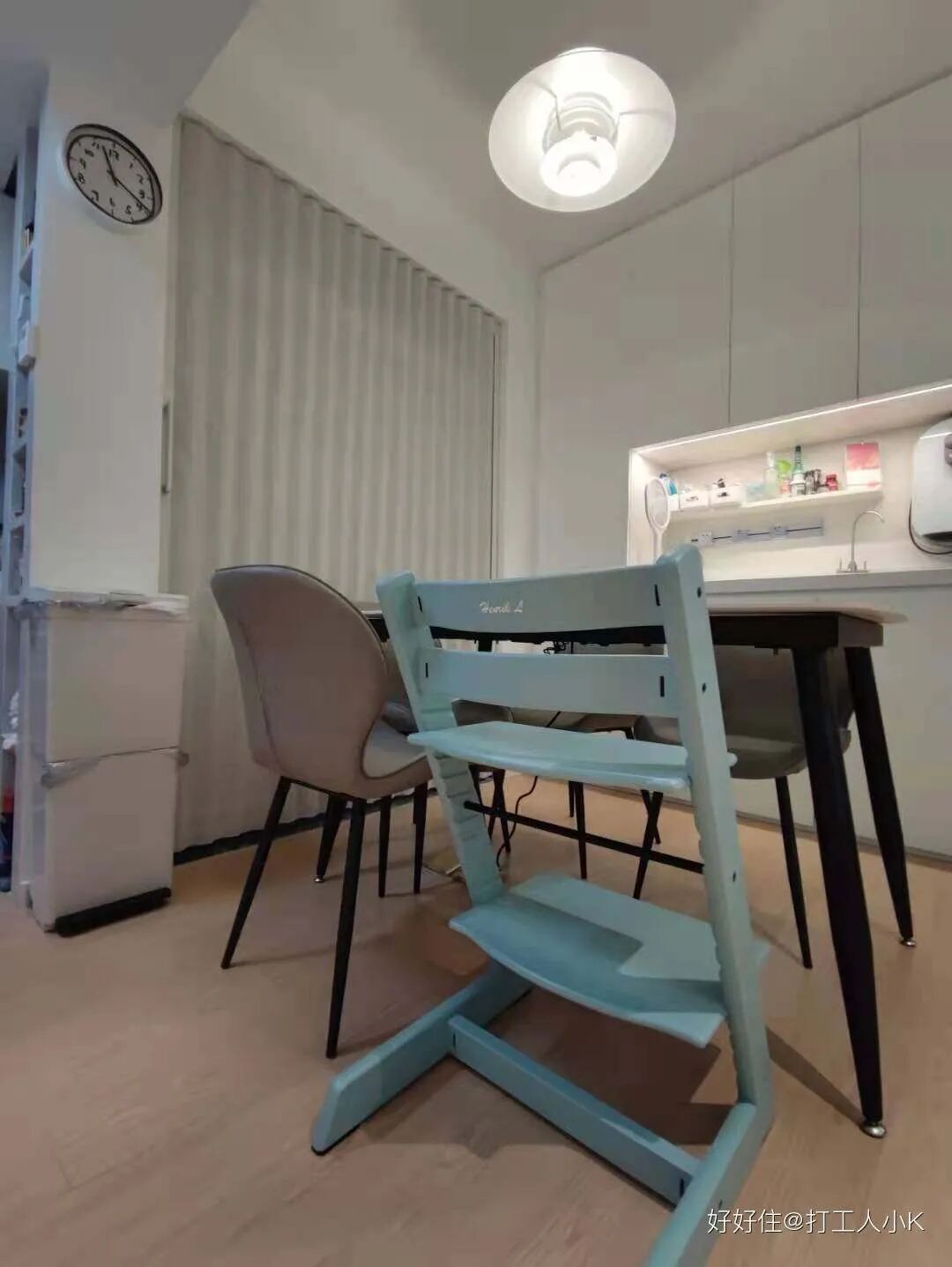 餐边柜相当于水吧。曾经洗奶瓶洗到怀疑人生,这次加了个带洗杯器的水槽,洗奶瓶、咖啡杯都很干净。