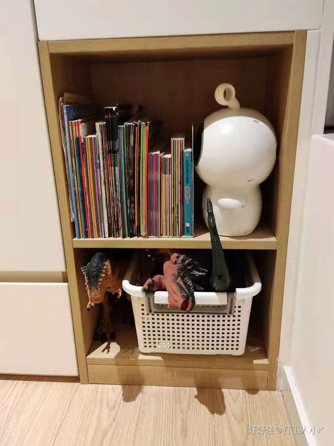 △ 玩具开放格,收纳睡前读物和玩具。