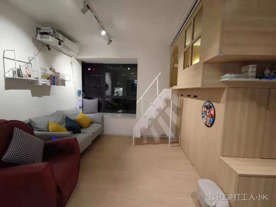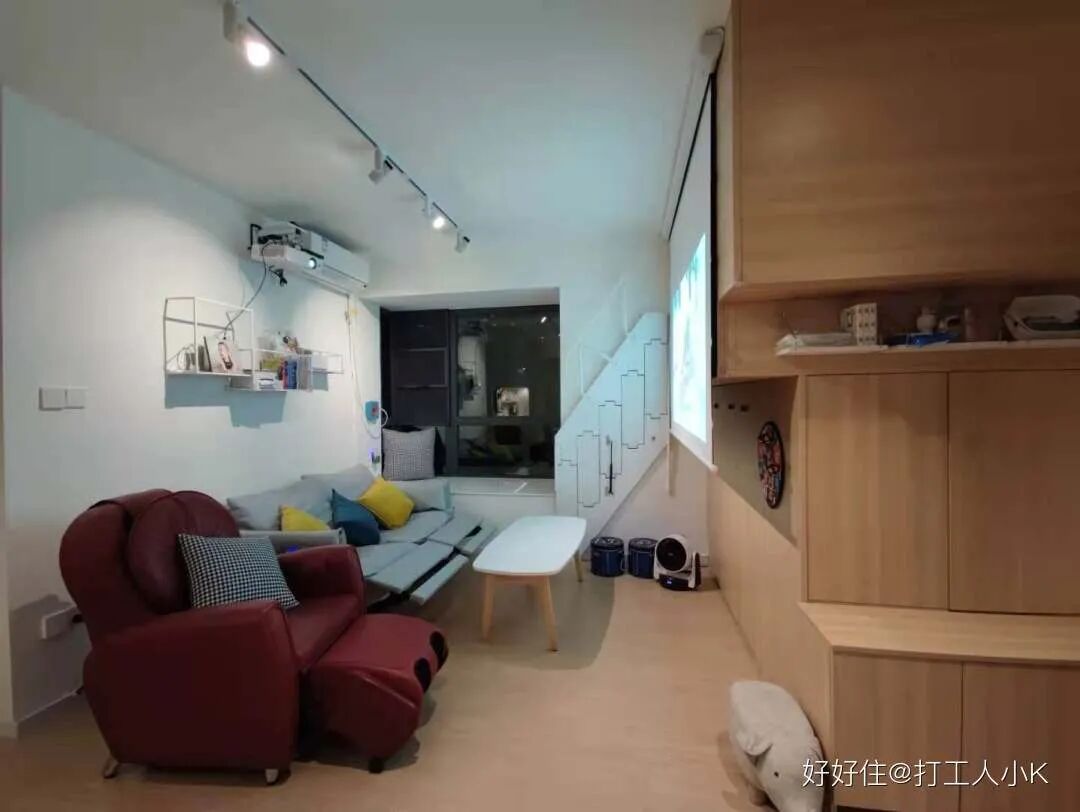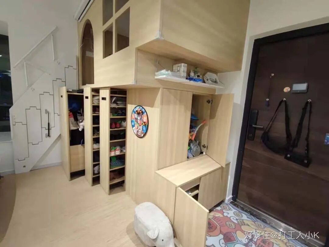 右边的 playbox 集换鞋、储物、儿童游乐区、投影背景墙、临时客卧五大功能与一体,非常强大。