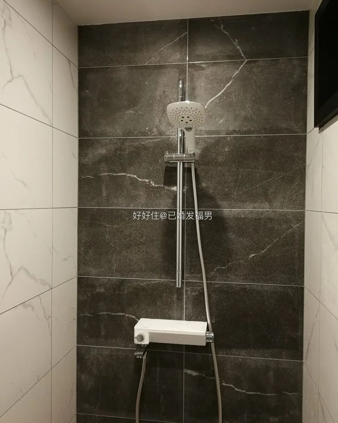 家里水压不够大,淋浴区没法实现顶喷飞雨,屋主 DIY 了个手持版,简直不要太爽。