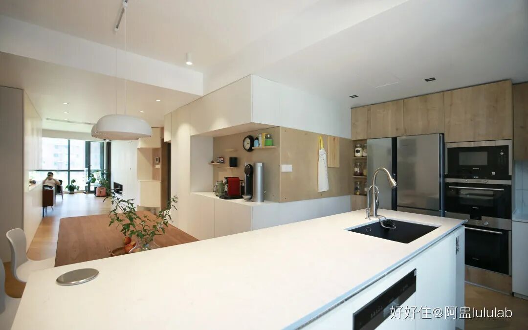 ② 岛台和餐桌形成洄游动线,增加空间流动性;