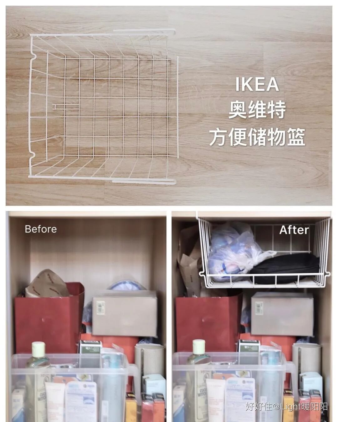 利用尴尬空间的方法,除了前面提到的台上加一层,还有台下「加外挂」~ 忍受不了空间浪费的住友@Light暖阳阳 入手了这款挂篮,柜内闲置的三分之一空间终于被榨干!而且灵活方便,橱柜、衣柜下的空间都能利用起来~