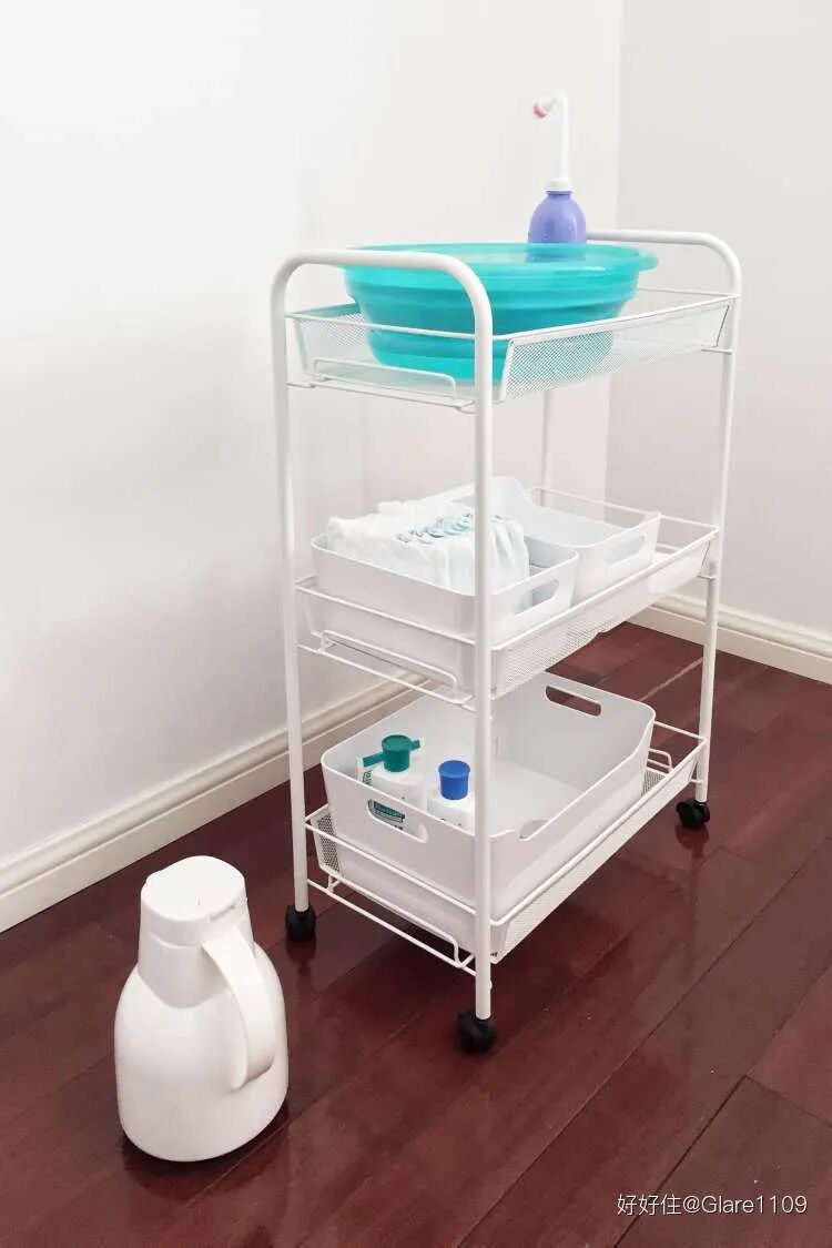 宝宝回家两天,一直在买买买。宜家霍纳文推车用来收纳宝宝日常清洁用品真是便宜好用。