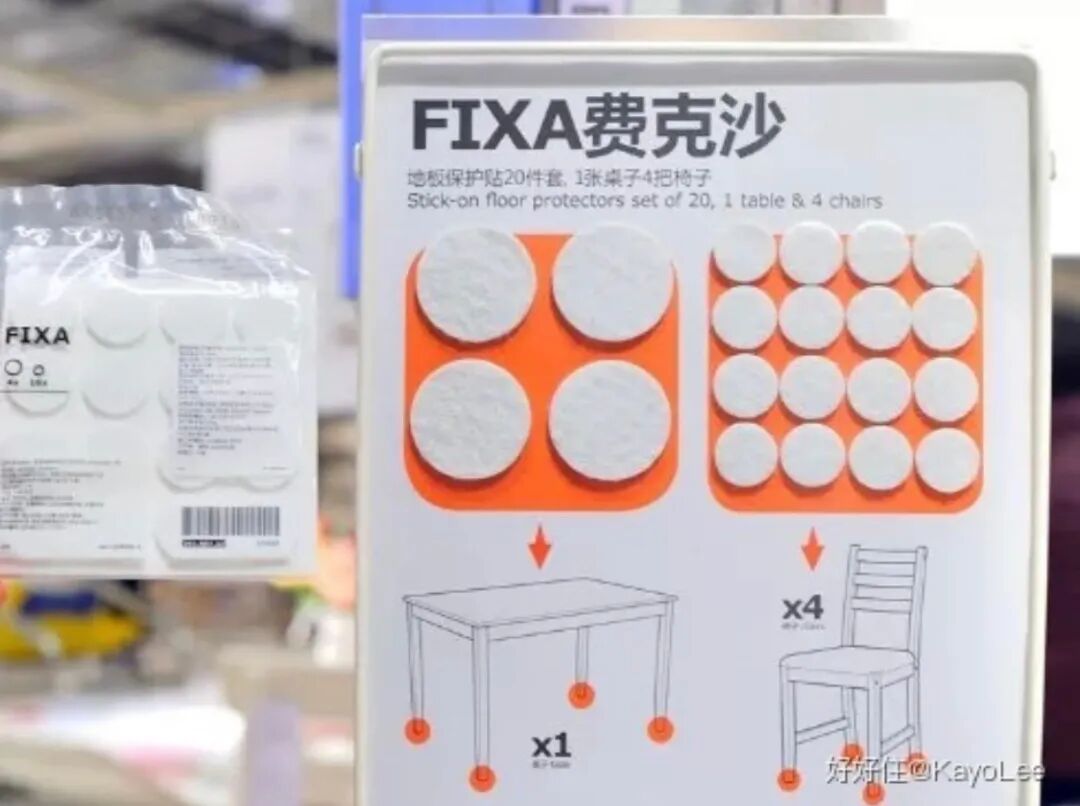 宜家费克沙地板保护贴,就几块钱一包,一包 20 件,贴在凳子和桌子脚上,再也不怕磨损地面,也不怕移动桌子凳子时的刺耳声音了。