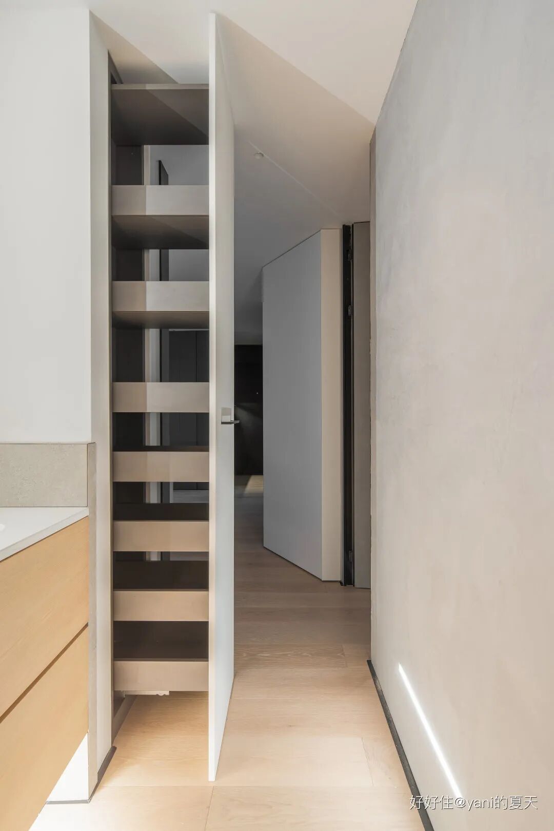 2. 收纳柜:顶天立地,隐藏式无把手;