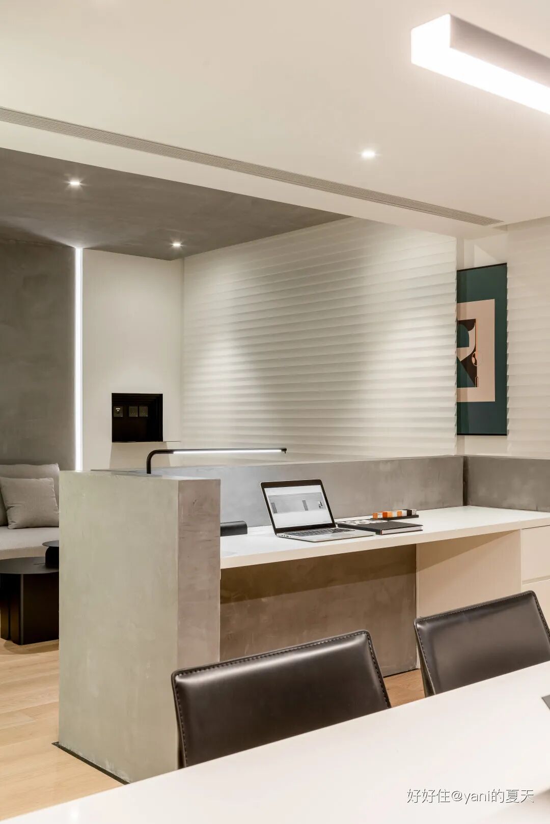客厅做了筒灯和线条灯,每个区域都能照顾得到。有时候书桌上不需要开台灯就已经足够明亮了。