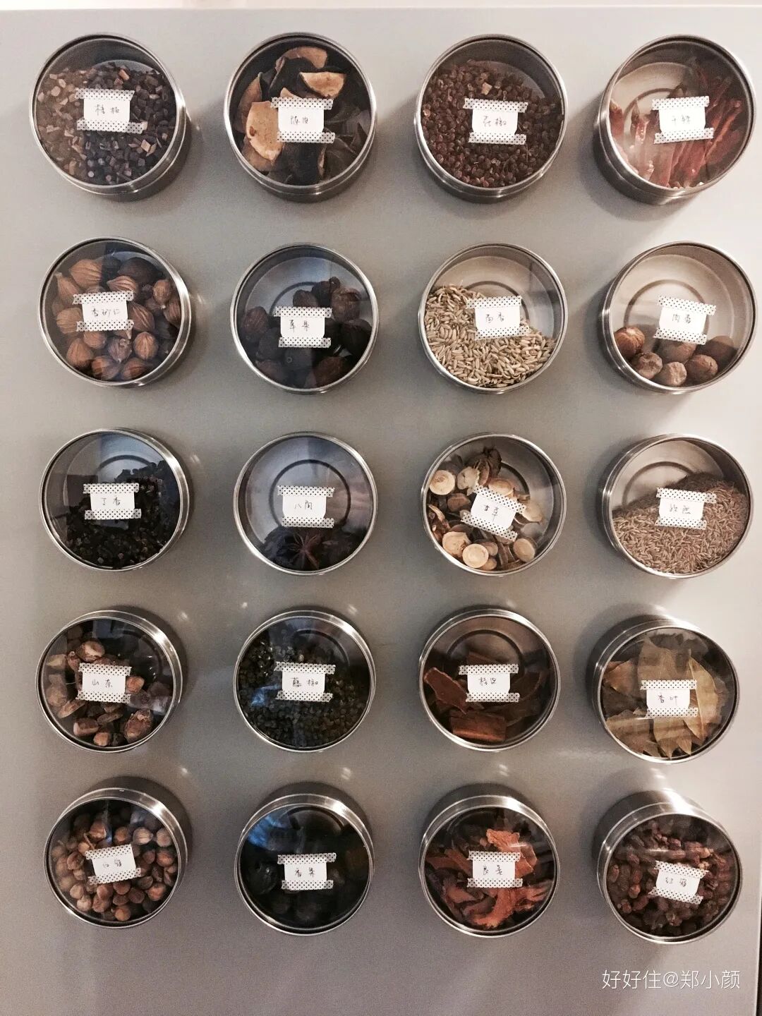 香料家族靠磁吸调料罐收纳在冰箱侧面,再也不怕翻箱倒柜找不到的尴尬。