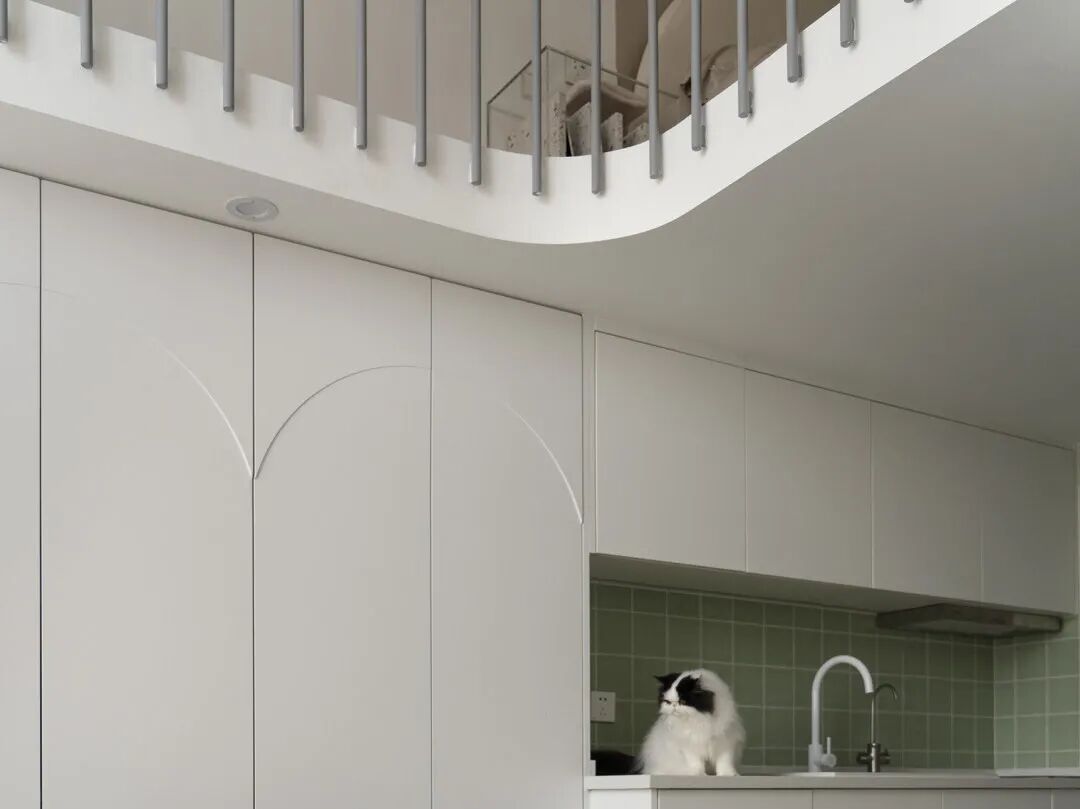 屋主作为一名程序员,工作时理性规整,回家后只想无拘无束,和方方正正的棱角说 byebye,让家住起来更柔和、更有趣。所以在这个家里,到处都能看到巧妙的弧线设计: