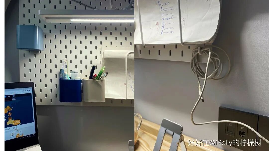 洞洞板也是为了节省空间存在,随手的文具和小物都可以往上挂。