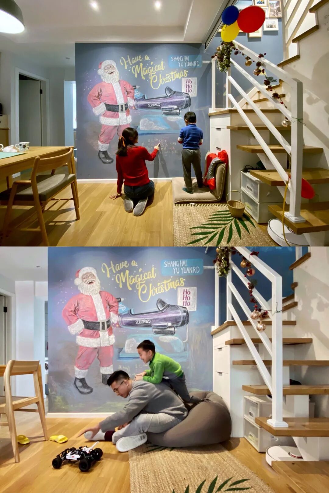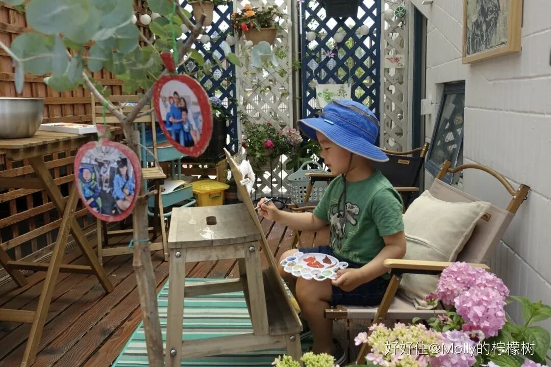 尤其是疫情期间,她和老公天天去露台开荒种花。孩子无法返校,她就陪着他一起,做手工、读绘本、画黑板画……她为家设计的一切都有了用武之地。