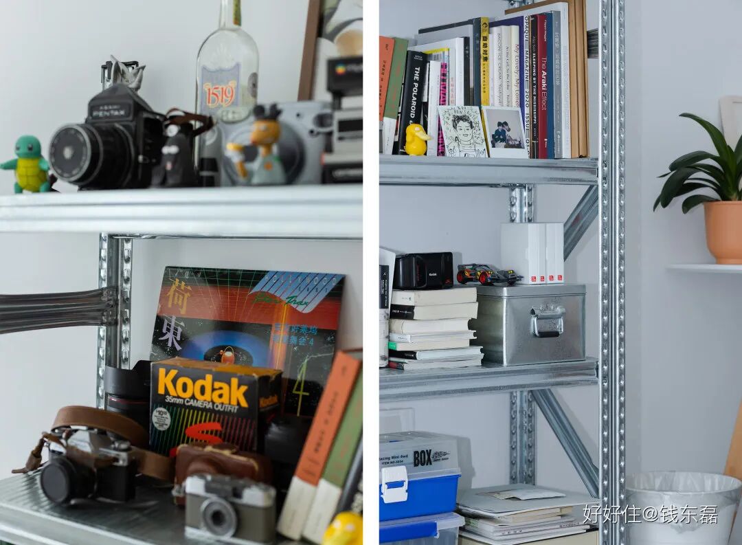 紧邻书桌处是一个以 Metalsistem货架为主体的置物架区域,算是东磊中意的 City boy风标配了。