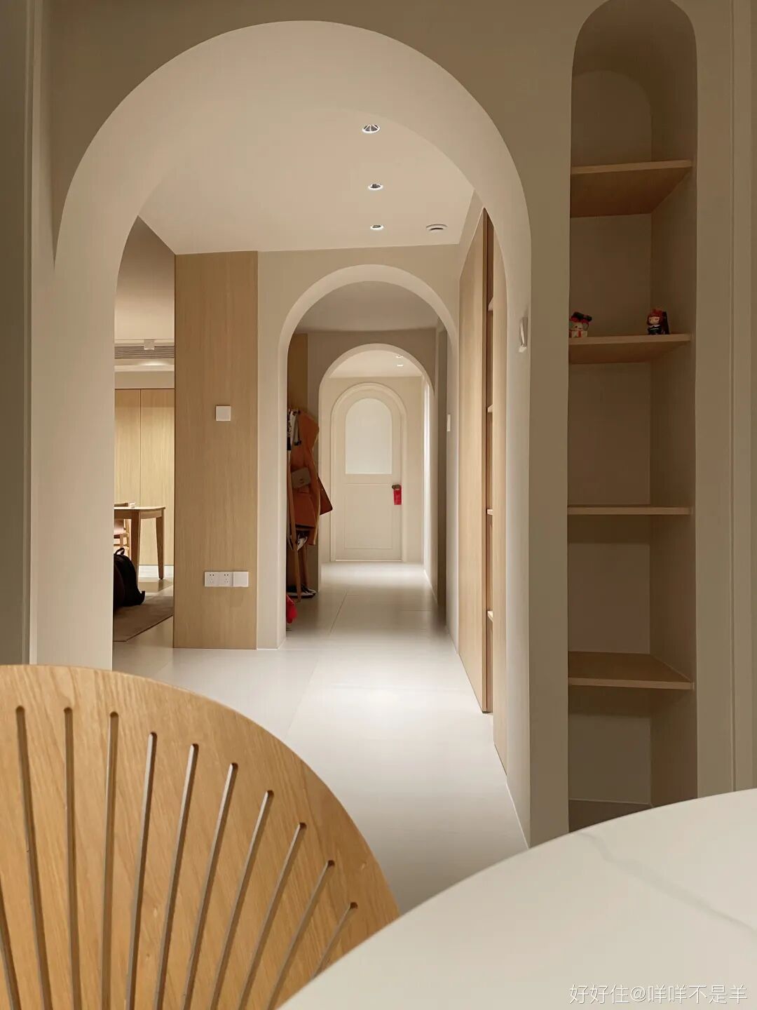 毕竟相比棱角分明的门框,弧形能让整个空间都变得更柔和,还能在视觉上提升层高,让空间整体层次感更强。拱门装得好,那就是家的加分神器。