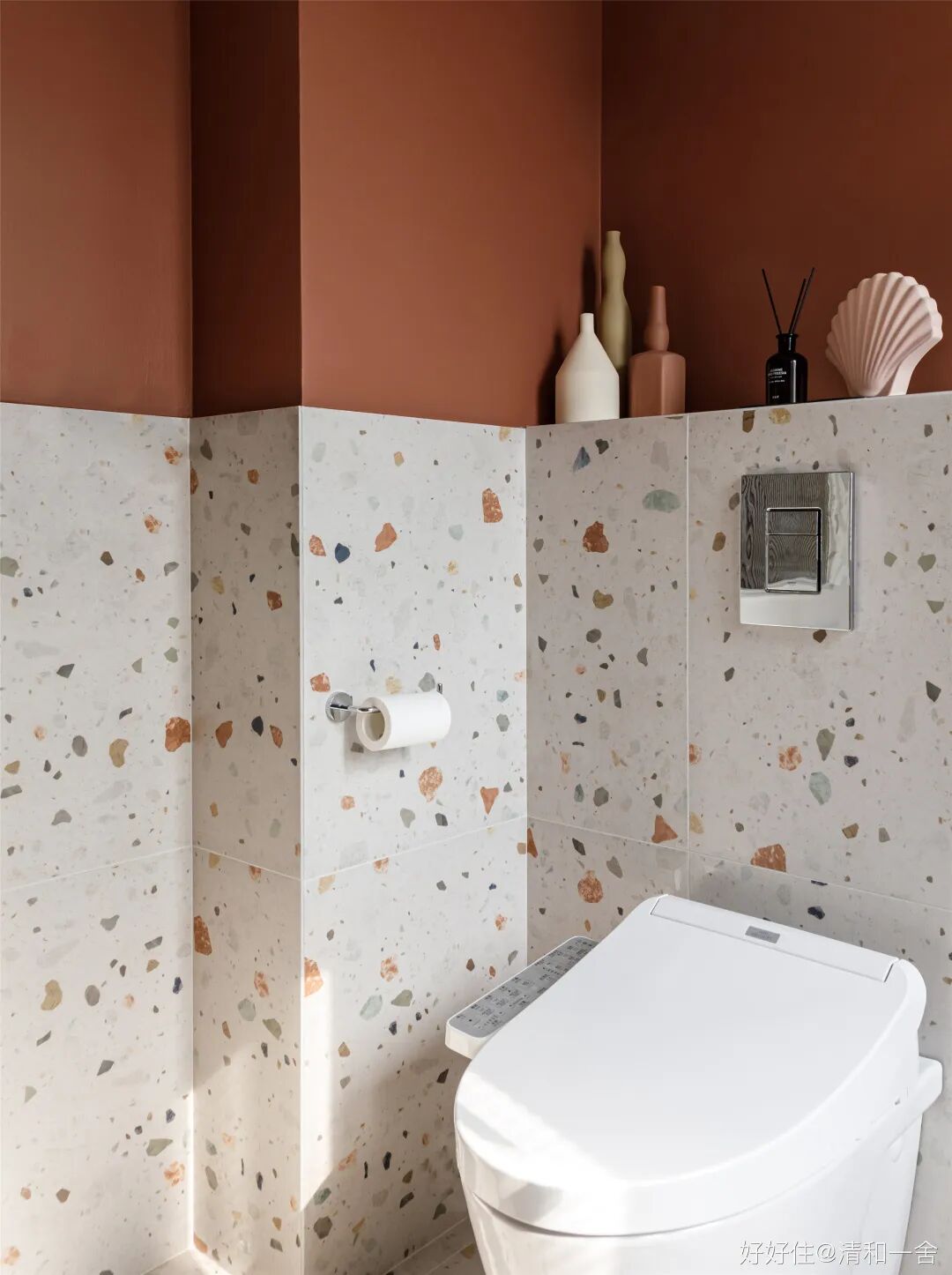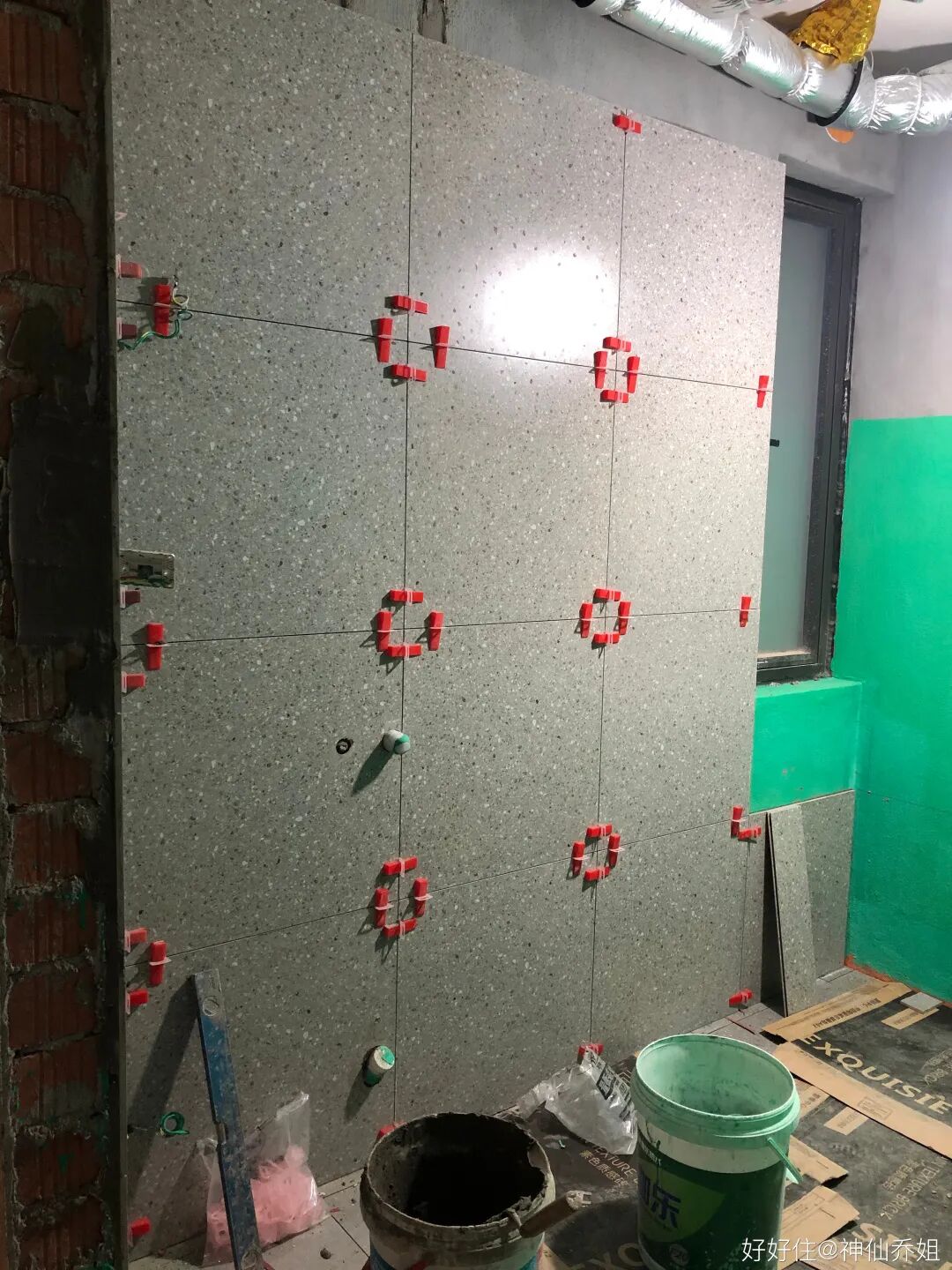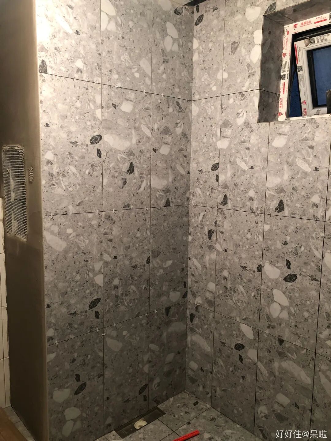 但是如果用不好,就非常灾难了。住友@神仙乔姐 家的水磨石砖上墙铺好之后,总有种不像家的感觉,那种古早公众场合的氛围感扑面而来。