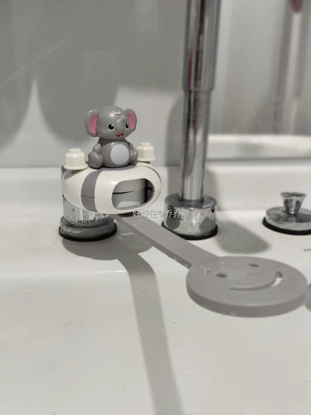 住友@乔乔糖 家的洗手盆比较大,水龙头开关又比较短,小朋友踩着小凳子也够不着,每次都要大人帮忙开关。有了它,小朋友就可以自己洗漱了。