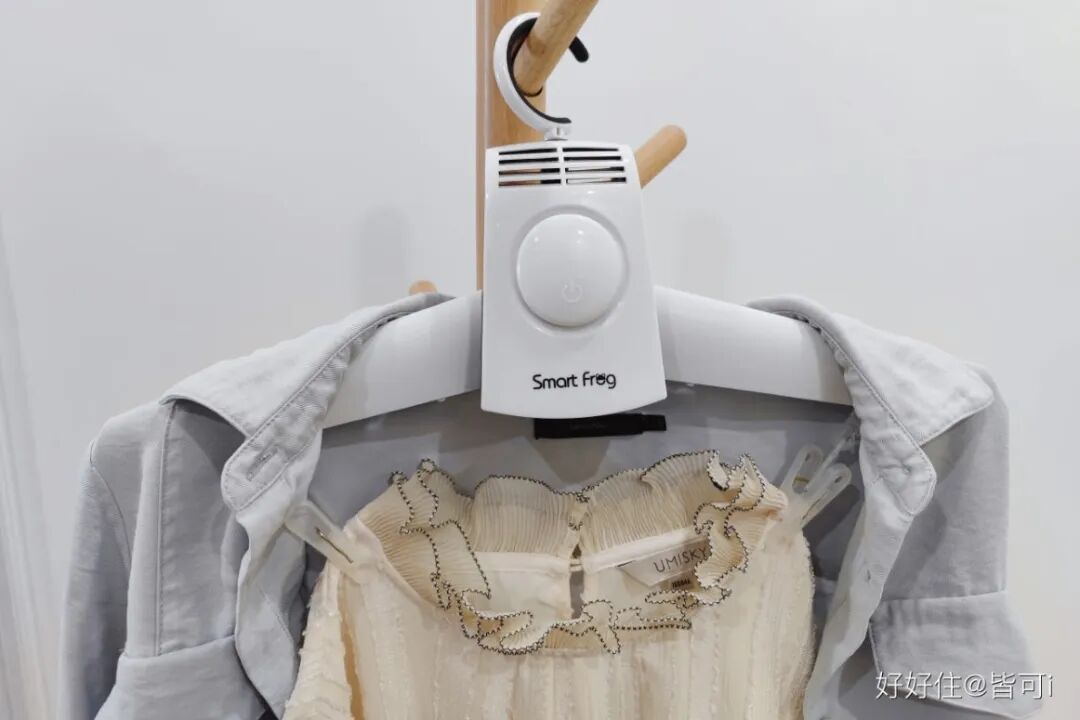 住友@皆可i 就会带一个便携式干衣架,洗的衣物挂上去,第二天就干透了。此外,如果雨天出门湿了鞋袜,它也可以快速烘干。